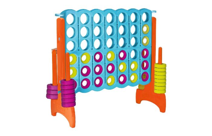 Dit strategische reuzenspel bestaat uit het op een rij leggen van 4 jetons van dezelfde kleur op verticale, horizontale of diagonale wijze.